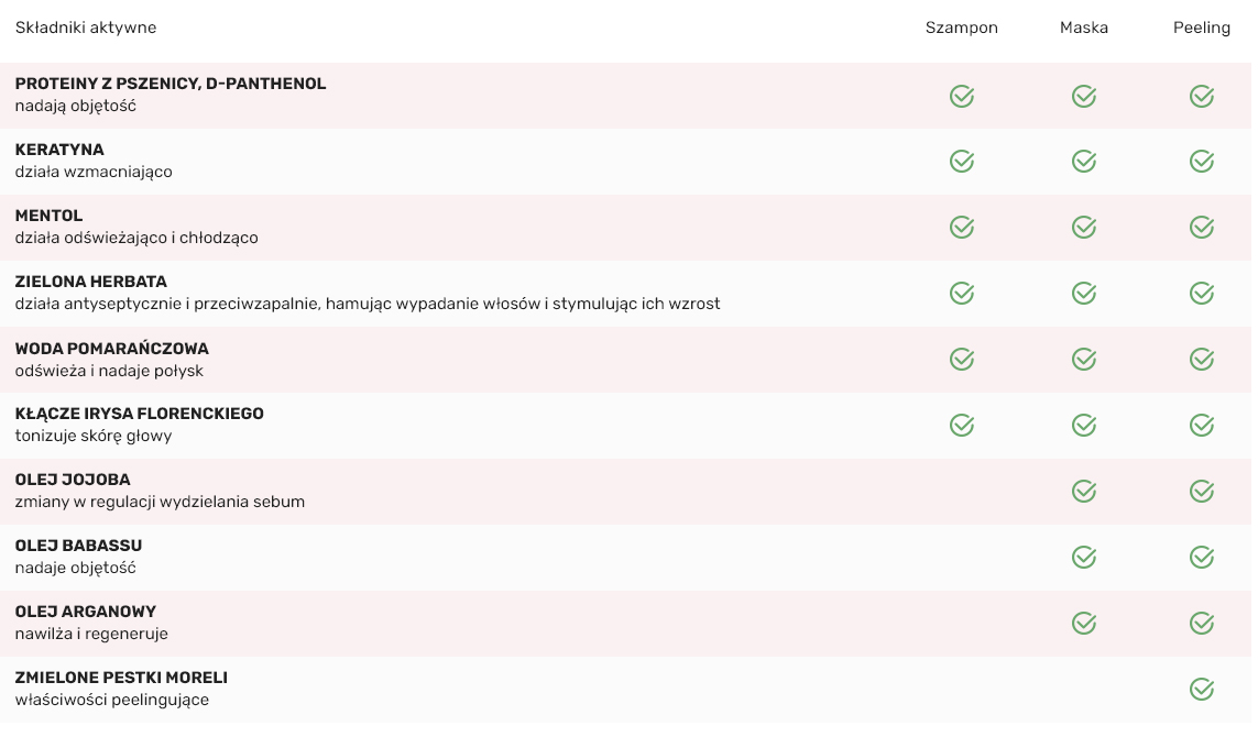 Zwiększa objętość, wzmacnia strukturę włosa,