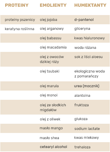 protein, emolientów i humektantów w równych ilościach. Aby włosy wyglądały