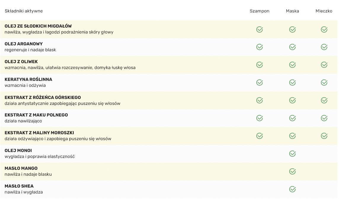 kołtunienie, a włosy łatwo się rozczesują. Domyka łuskę włosa, działa