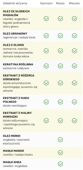 regenerację, zapobiega kołtunieniu się i łamliwości włosów.